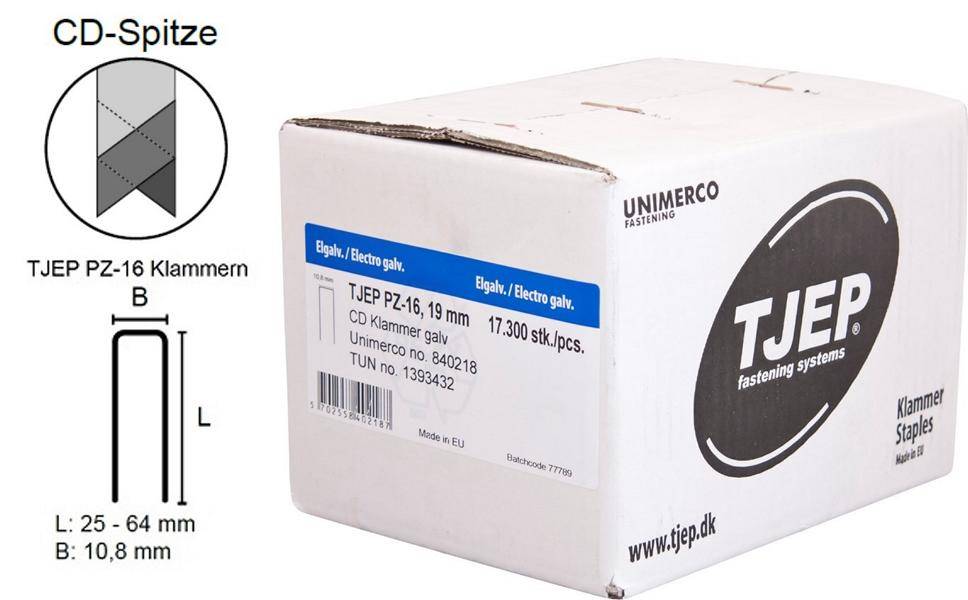TJEP PZ-16 Klammern 19 mm, verzinkt und geharzt, CD-Spitze